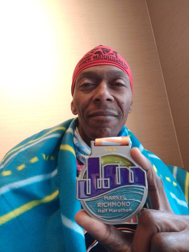 Tagged every corner as close as I could/should without incident. Then the hills came. That rolling ish blended inside miles six and seven could have been left out. But, even though I’m complaining, I took down every hill as smooth as a hot knife through butter. Old Man Winter kept charging us with wind gusts. “Embrace the wind!” I tell myself just to stay relaxed. “Embrace the wind!” while getting sliced from another direction. After awhile, I’d had enough embracing and was cursing under my breath. Plantar fasciitis started up in my right foot which eventually started the hamstrings to humming. This forced me to drop my pace in the second half, but it kept me injury free for the most part. When we hit that long downhill in the last mile, I became concerned because I wasn’t braking like I normally do. I think that the grade was just about perfect to push here. Then finally the finish line. I finished strong and had all of these ideas of how I was going to have a dramatic photo opp, but there were too many bodies and I couldn’t find the cameras and said, Oh the hell with it. I was done. The blanket that we received was a great takeaway because the wind was not done with us. Shout-out to the Wakanda Running Warriors for winning largest team. Sorry I missed the team photo, but here is the reason why: the ugly part of my short weekend in Richmond.