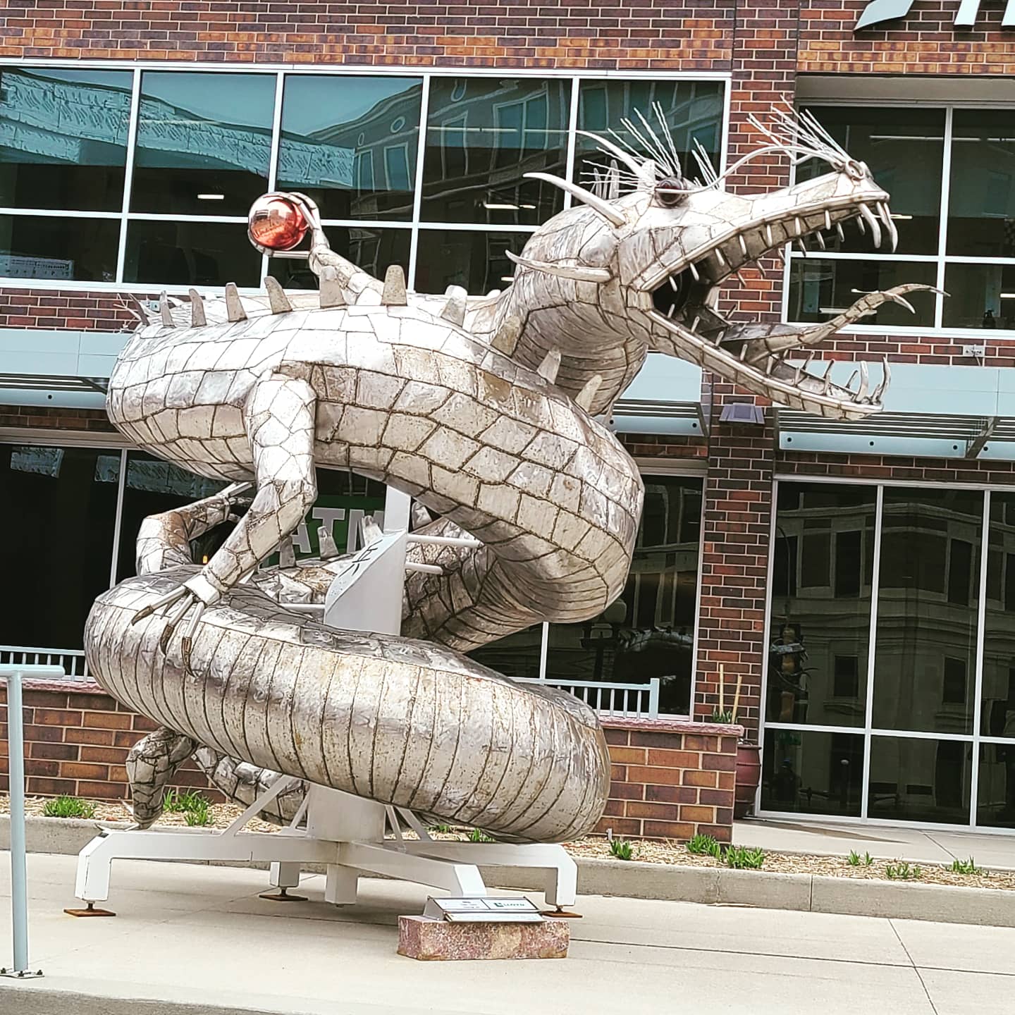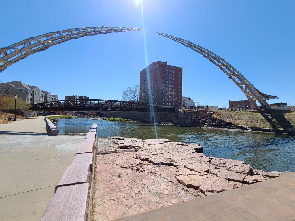 I start my race after all had left. Caught the back of the pack at mile five. But not before running over hill after rolling hill through neighborhood streets. Once on the trail skirting the Big Sioux River was relatively flat with a couple of foot bridge crossings. The path snakes through the park and returns to the downtown runner’s festival.